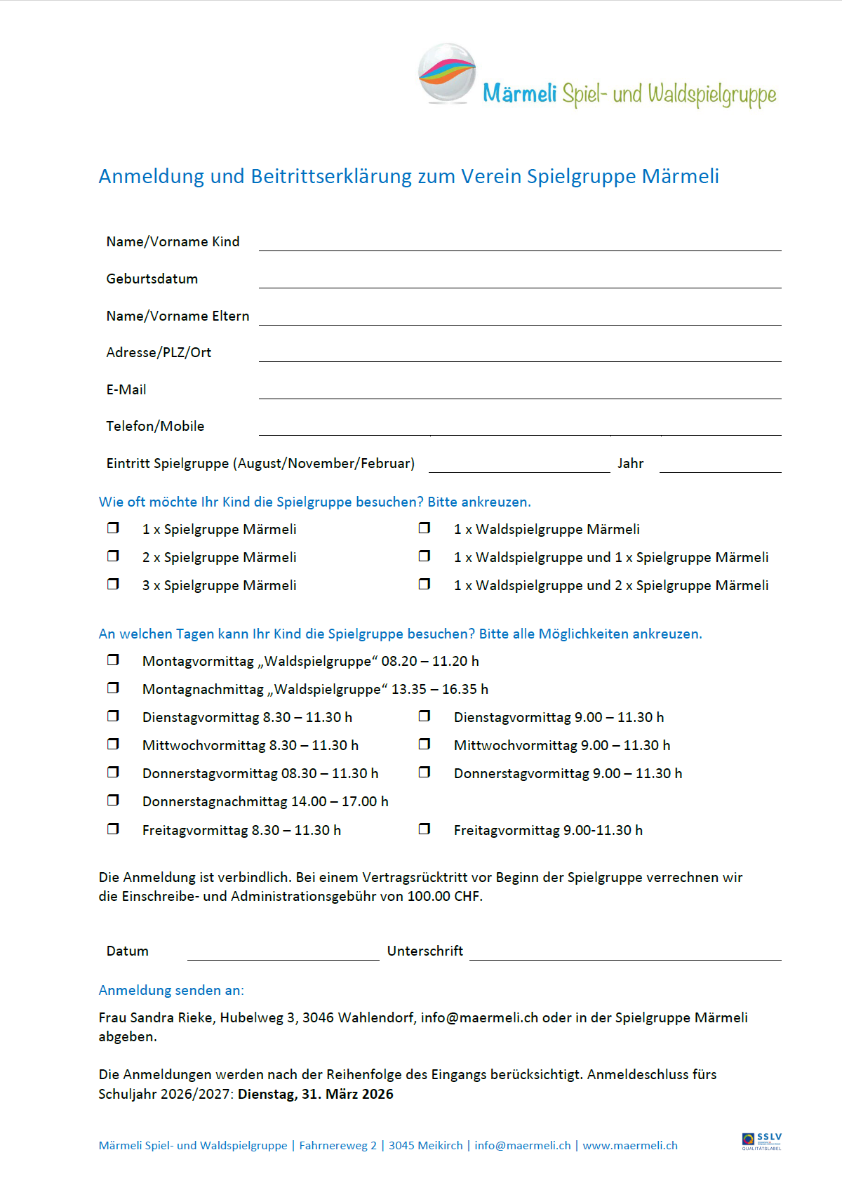 Anmeldungen Spielgruppenjahr 26/27!