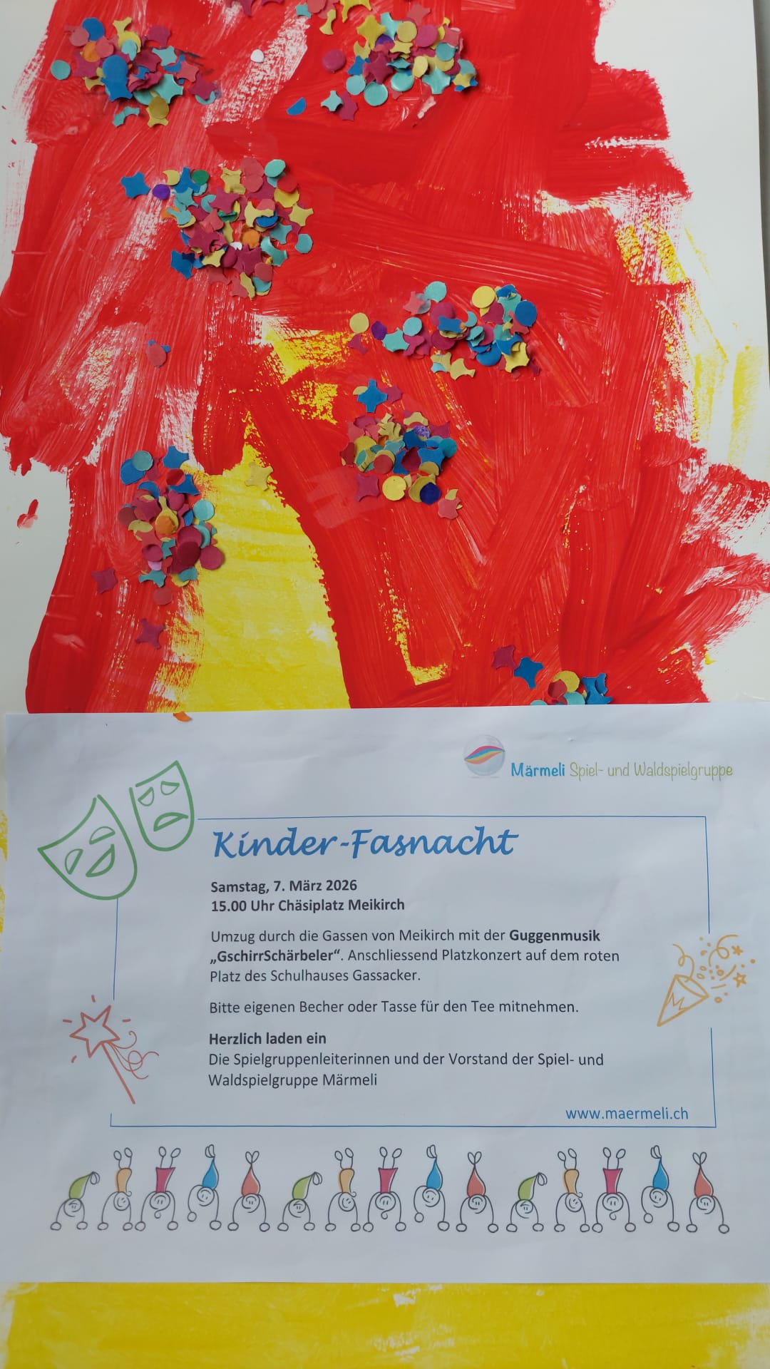 Herzlich eingeladen sind alle Kinder aus der Gemeinde und Umgebung, unter Aufsicht ihrer Eltern. Im Anschluss gibt es leckeren warmen Tee und Fasnachtschüechli. Nehmen sie hierfür bitte einen eigenen Trinkbecher mit.