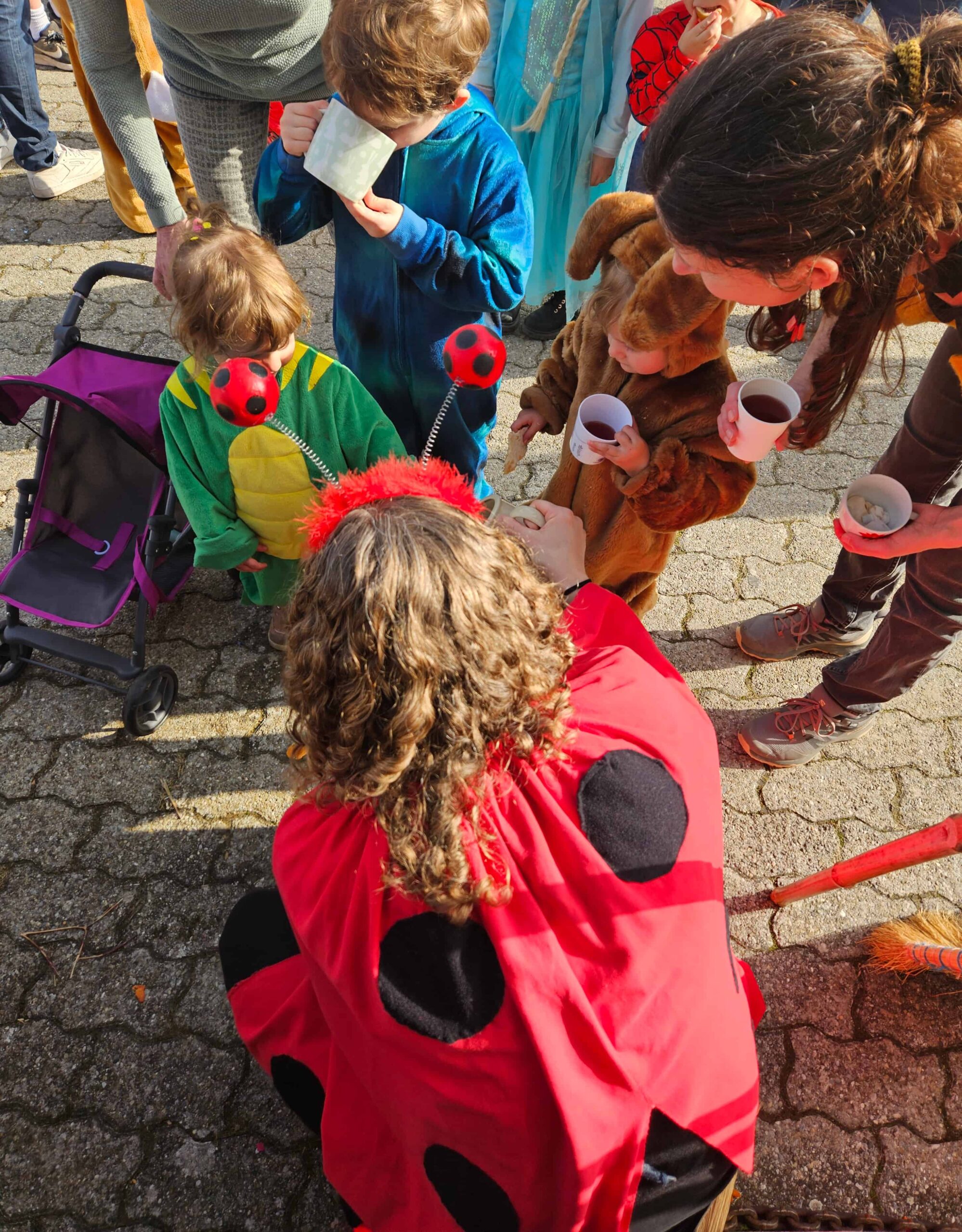 Begleitet von Polizisten, Marienkäfern, Prinzessinnen, Comichelden und vielen mehr genossen wir bei strahlendem Sonnenschein die Musik, die tolle Stimmung, Fasnachtschüechli und Tee.
